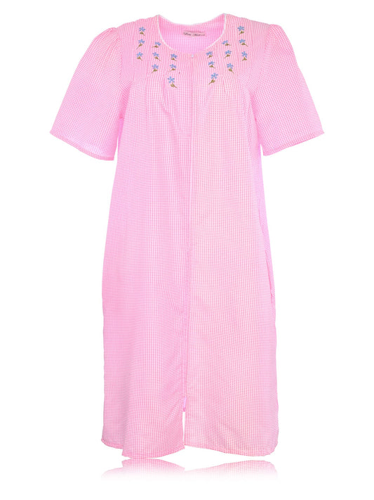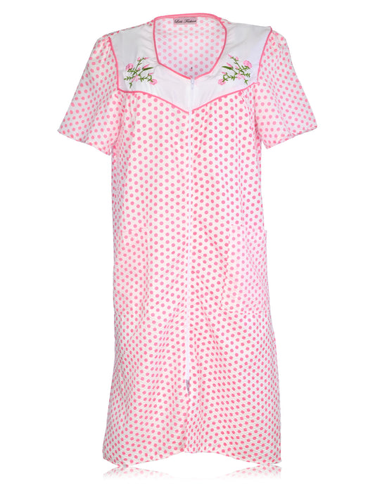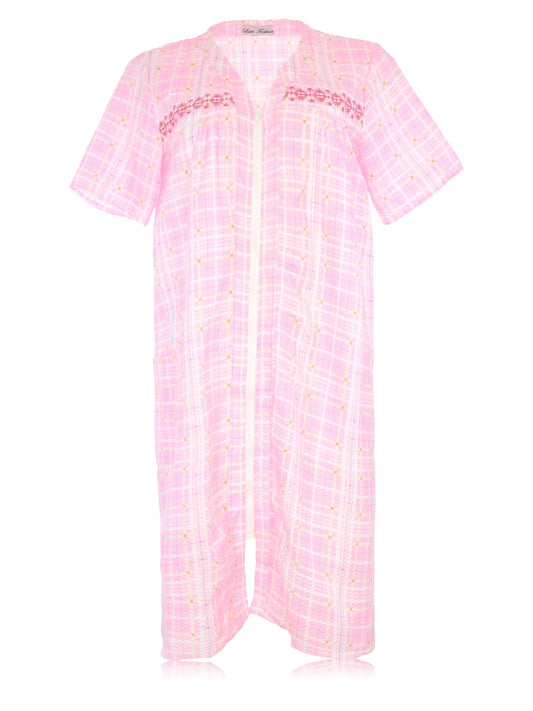 JEFFRICO House Dresses for Women with Pockets - Lightweight Breathable Short Sleeve Muumuu & Nightgowns - Zipper Front Housecoat and Dusters for Women