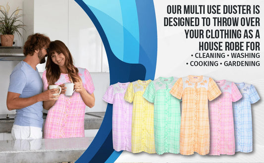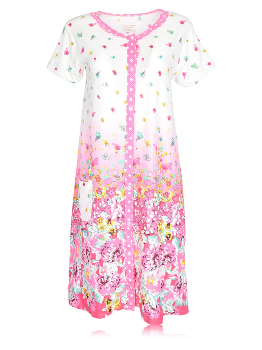 JEFFRICO House Dresses for Women with Pockets - Lightweight Breathable Short Sleeve Muumuu & Nightgowns - Snap Front Housecoat and Dusters for Women