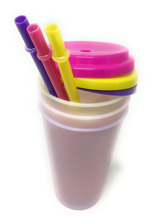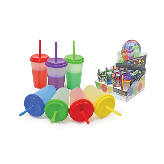 Color Changing Tumbler Cups with Straw 12 oz 3 Pack Reusable Plastic Kids Drink Cups Assorted Colors Random Selection