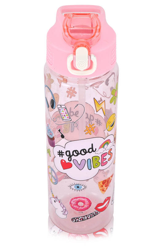 Kids Water Bottle, 27 oz BPA-Free Reusable Bottle with One-Click Open Flip Straw Lid, Leak-Resistant