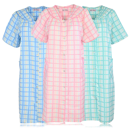 JEFFRICO House Dresses for Women with Pockets - Lightweight Breathable Short Sleeve Muumuu & Nightgowns - Snap Front Housecoat and Dusters for Women