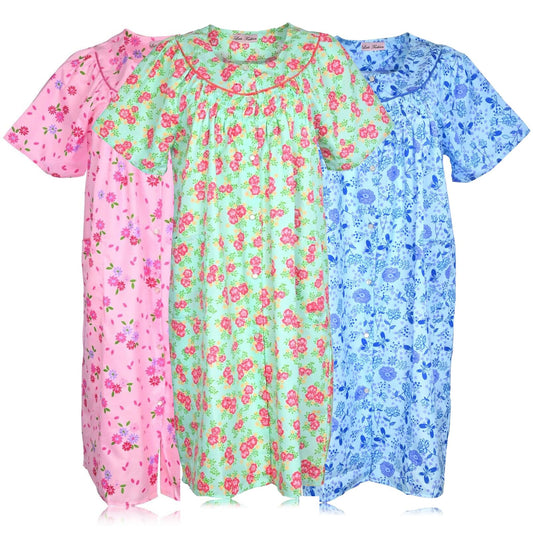 JEFFRICO 3 Pack House Dresses for Women with Pockets - Lightweight Breathable Short Sleeve Muumuu & Nightgowns - Dusters