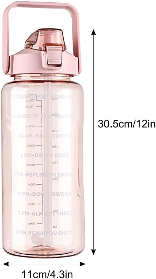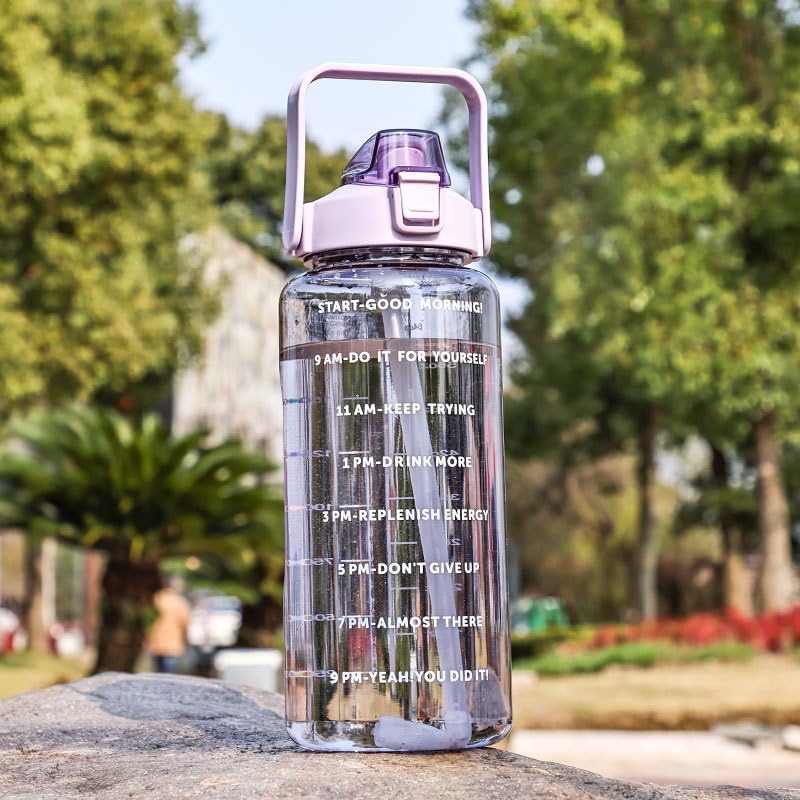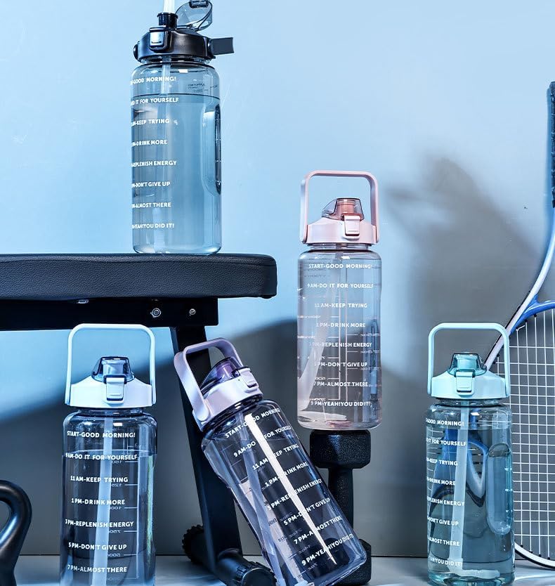 Stay hydrated and motivated throughout the day with this 2 Liter BPA-Free Motivational Water Bottle, designed to help you reach your daily hydration goals with ease. The bottle features clearly printed time markers paired with encouraging phrases, reminding you when to drink and helping you stay on track from morning to evening. With its extra-large 2-liter capacity, this bottle reduces the need for constant refills, making it ideal for gym workouts, sports, school, work, and outdoor activities. The leakproof flip-top lid helps prevent spills, while the lightweight design and built-in carry handle make it easy to take anywhere. Made from BPA-free, reusable plastic, this water bottle is designed for safer everyday hydration. Available in three stylish assorted colors ,it’s suitable for all ages. Whether you’re staying active, working long hours, or just trying to drink more water each day, this motivational bottle makes hydration simple and convenient.