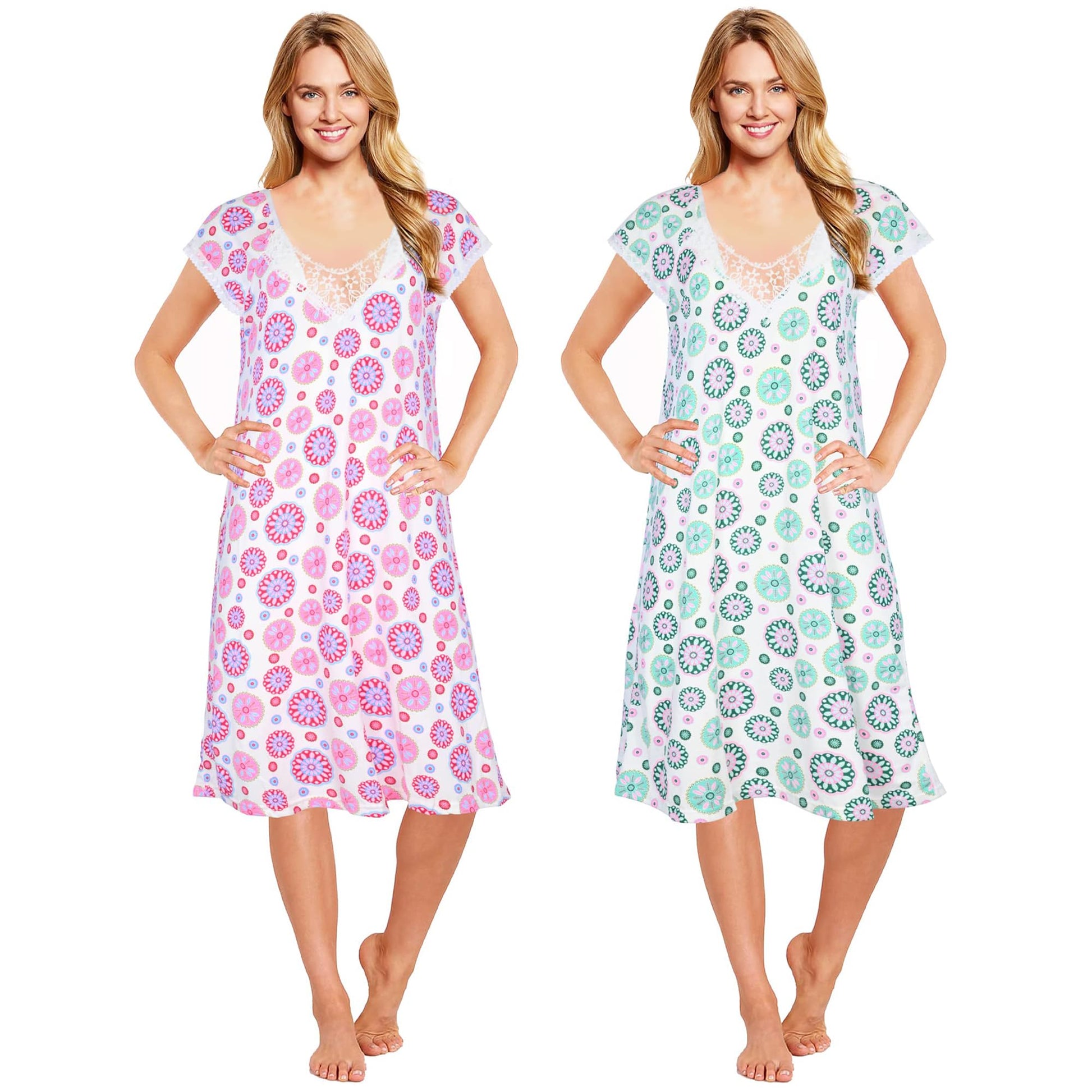 JEFFRICO Womens 2 Pack Nightgowns Short Sleeve Sleepwear Soft Pajama Dress Nightshirts