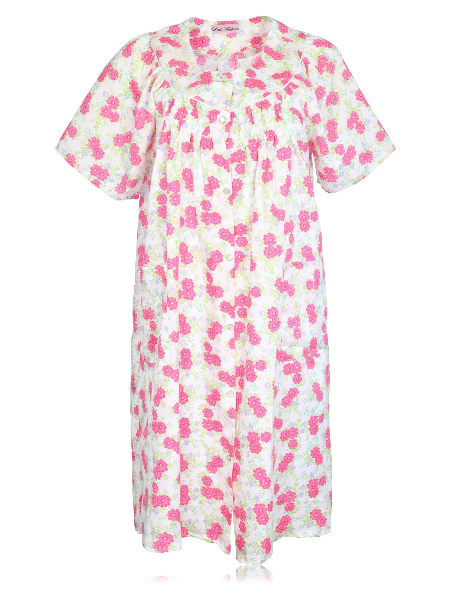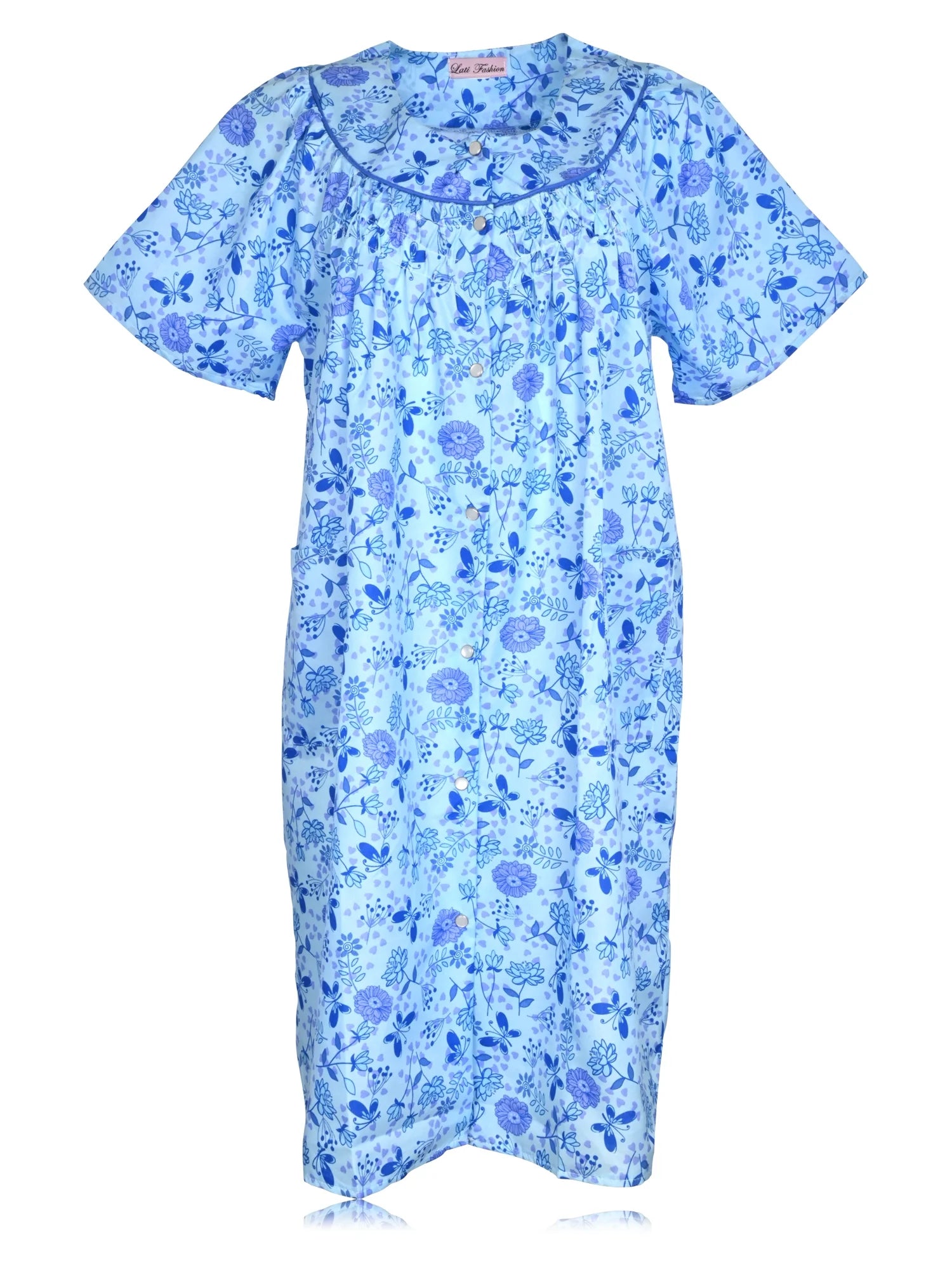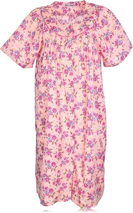 Discover the ultimate in comfort and style with our exquisite cotton house dress collection. Designed for women who value both elegance and relaxation, these womens house dress offer a luxurious feel with their blend of 55% Cotton and 45% Polyester. Ideal for any time of year, these house robes for women provide a breathable and soft experience, making them ideal for lounging or sleeping. Featuring a practical housecoats for women snap front closure, these dresses ensure easy dressing and undressing. The inclusion of pockets in our cotton house dresses for women with pockets adds convenience, allowing you to keep small essentials close at hand. Whether you're enjoying a quiet evening at home or running quick errands, these house dresses are designed to meet your everyday needs with a touch of sophistication. Our womens dusters for all ages older women your wife, summer light weight option is ideal for warmer days. The lightweight fabric keeps you cool while maintaining a polished look, making it a fantastic alternative to traditional mumus for women. With their elegant design and practical features, these house dresses for women seamlessly transition from a day of relaxation to evening comfort. Each womens housecoat in our collection combines timeless style with modern functionality. The snap front closure adds a touch of convenience, while the soft, breathable cotton fabric ensures all-day comfort. These house robes for women are versatile enough to wear around the house or as a casual day dress, making them a staple in any wardrobe. Elevate your loungewear with our collection of cotton house dresses. Experience the ideal blend of comfort, practicality, and style with our housecoats for women snap front, designed to offer ease of wear and timeless elegance. Explore our range today and find your ideal house dress for women that combines classic charm with modern functionality.