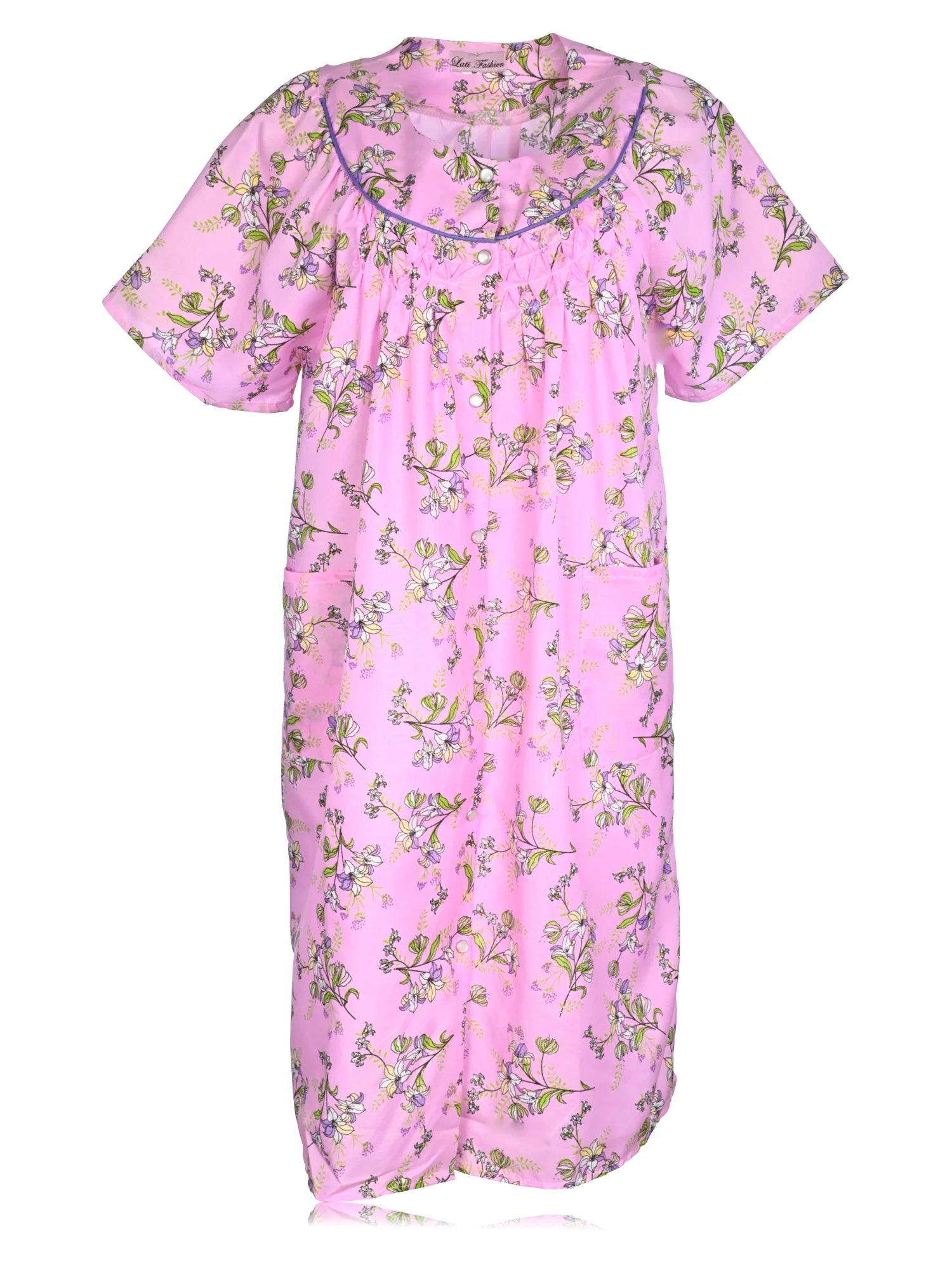 - Elegant Housecoats for Women: These house coats for women with pockets offer a soft, lightweight feel, ideal for any season. House Coat crafted from 55% Cotton and 45% Polyester, they feature a breathable design and come in an array of beautiful prints.