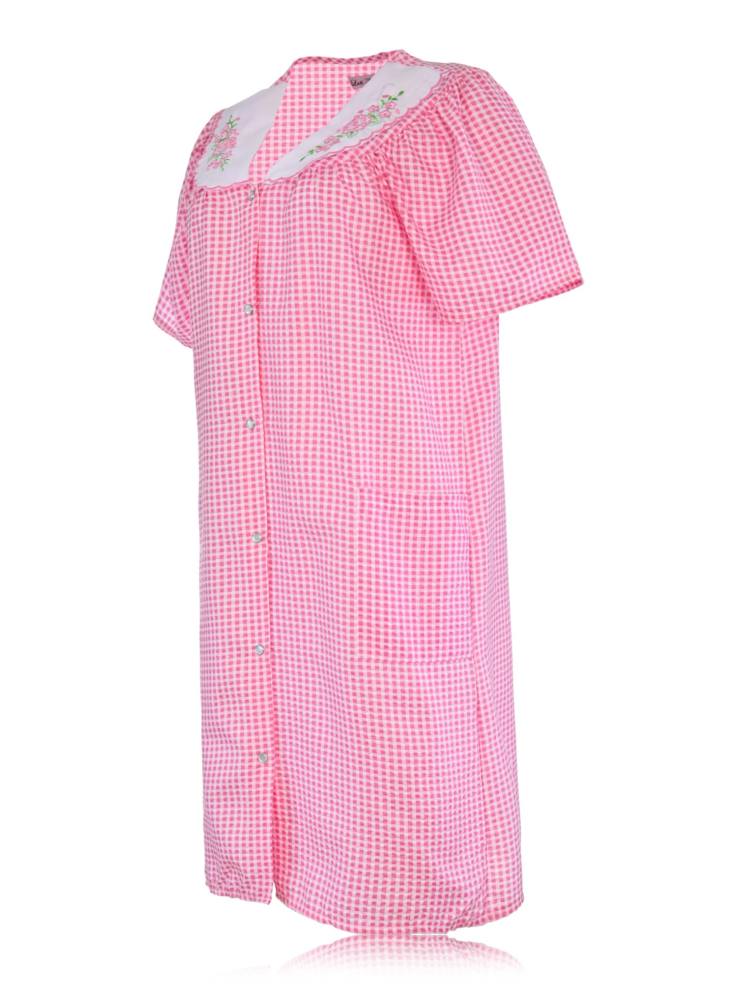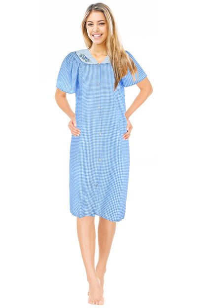 Discover the ultimate in comfort and style with our exquisite cotton house dress collection. Designed for women who value both elegance and relaxation, these womens house dress offer a luxurious feel with their blend of 55% Cotton and 45% Polyester. Ideal for any time of year, these house robes for women provide a breathable and soft experience, making them ideal for lounging or sleeping. Featuring a practical housecoats for women snap front closure, these dresses ensure easy dressing and undressing. The inclusion of pockets in our cotton house dresses for women with pockets adds convenience, allowing you to keep small essentials close at hand. Whether you're enjoying a quiet evening at home or running quick errands, these house dresses are designed to meet your everyday needs with a touch of sophistication. Our womens dusters for all ages older women your wife, summer light weight option is ideal for warmer days. The lightweight fabric keeps you cool while maintaining a polished look, making it a fantastic alternative to traditional mumus for women. With their elegant design and practical features, these house dresses for women seamlessly transition from a day of relaxation to evening comfort. Each womens housecoat in our collection combines timeless style with modern functionality. The snap front closure adds a touch of convenience, while the soft, breathable cotton fabric ensures all-day comfort. These house robes for women are versatile enough to wear around the house or as a casual day dress, making them a staple in any wardrobe. Elevate your loungewear with our collection of cotton house dresses. Experience the ideal blend of comfort, practicality, and style with our housecoats for women snap front, designed to offer ease of wear and timeless elegance. Explore our range today and find your ideal house dress for women that combines classic charm with modern functionality.