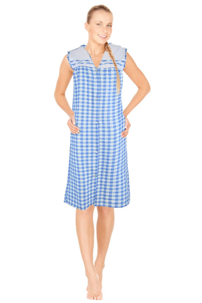 Discover the ultimate in comfort and style with our exquisite cotton house dress collection. Designed for women who value both elegance and relaxation, these womens house dress offer a luxurious feel with their blend of 55% Cotton and 45% Polyester. Ideal for any time of year, these house robes for women provide a breathable and soft experience, making them ideal for lounging or sleeping. Featuring a practical housecoats for women snap front closure, these dresses ensure easy dressing and undressing. The inclusion of pockets in our cotton house dresses for women with pockets adds convenience, allowing you to keep small essentials close at hand. Whether you're enjoying a quiet evening at home or running quick errands, these house dresses are designed to meet your everyday needs with a touch of sophistication. Our womens dusters for all ages older women your wife, summer light weight option is ideal for warmer days. The lightweight fabric keeps you cool while maintaining a polished look, making it a fantastic alternative to traditional mumus for women. With their elegant design and practical features, these house dresses for women seamlessly transition from a day of relaxation to evening comfort. Each womens housecoat in our collection combines timeless style with modern functionality. The snap front closure adds a touch of convenience, while the soft, breathable cotton fabric ensures all-day comfort. These house robes for women are versatile enough to wear around the house or as a casual day dress, making them a staple in any wardrobe. Elevate your loungewear with our collection of cotton house dresses. Experience the ideal blend of comfort, practicality, and style with our housecoats for women snap front, designed to offer ease of wear and timeless elegance. Explore our range today and find your ideal house dress for women that combines classic charm with modern functionality.